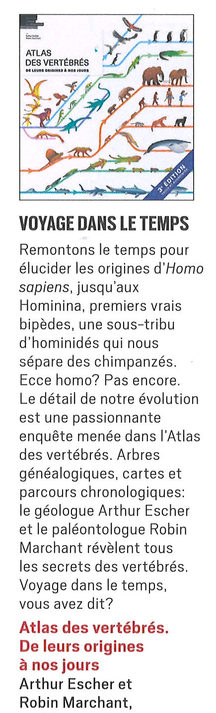 Le géologue et explorateur Arthur Escher a publié, en collaboration avec Robin Marchant, L’Atlas des vertébrés: de leurs origines à nos jours. Portrait d’un vertébré pas comme les autres.